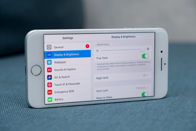 Kéo thanh trượt độ sáng lên cho phép độ sáng tối đa 530 nits. Các mức độ màu đen là trung bình và iPhone 8 Plus cung cấp độ tương phản màn hình là 1300: 1. Có thể đạt được độ sáng cao hơn 620 nits nếu điện thoại phát hiện ánh sáng mặt trời - đó là điều chỉnh tự động để giúp bạn nhìn rõ hơn ngoài trời.