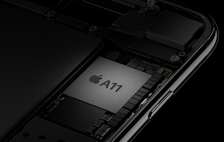 Chip A11 Bionic có hai lõi Mon gió 2.1 GHz công suất cao, mạnh hơn 25% so với các cơn bão 2.34GHz trong A10 Fusion. Bốn lõi Mistral có hiệu suất năng lượng và nhanh hơn 75% so với hai lõi Zephyr công suất thấp trong A10 Fusion. Tất cả sáu lõi có thể chạy cùng một lúc.